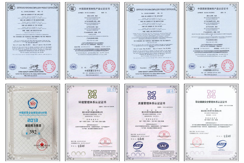程力專用汽車股份有限公司先后被隨州市政府評為“外貿(mào)先進單位”、 “工業(yè)八強企業(yè)”、“貢獻突出企業(yè)”、“十強納稅企業(yè)”,湖北省國稅局“全省國稅百佳納稅人”,湖北省“守合同重信用”企業(yè)等榮譽稱號;國家“高新技術(shù)企 業(yè)”;公司“程力威”。